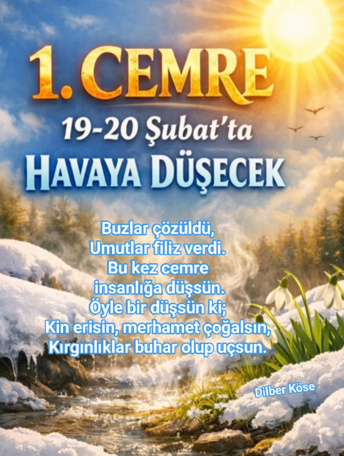 Ve unutmayalım ki, Cemre önce havaya değil, umuda düşer...