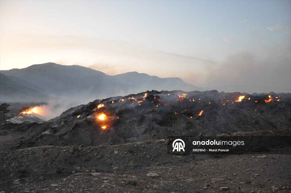 Mersin'in Anamur ilçesinde dün çıkan orman yangınına havadan ve karadan müdahaleye devam ediliyor.