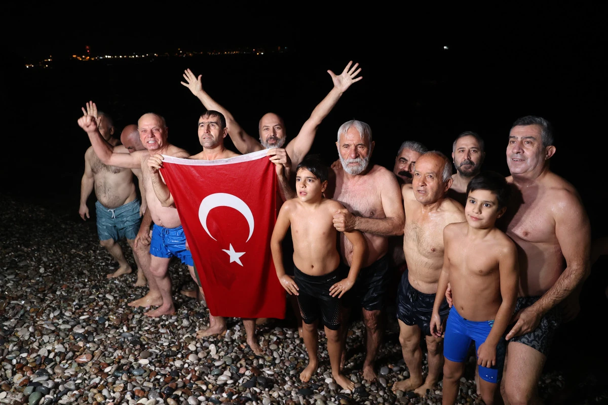 Yıllardır bu geleneği sürdüren grup, 2025 yılının son dakikalarında büyük bir heyecan yaşadı. Sahilde kurulan küçük ateşlerin etrafında toplanan katılımcılar, sıcak içeceklerle ısınırken, müzik eşliğinde eğlendi. Gecenin en dikkat çeken anı ise geri sayım oldu. 2025’in son 10 dakikasında herkes bir ağızdan saymaya başladı ve saatler 00.00’ı gösterdiğinde onlarca kişi aynı anda soğuk denize atladı.