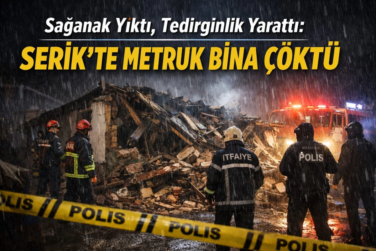 Antalya’nın Serik ilçesinde etkili olan sağanak yağış, uzun süredir kullanılmadığı öğrenilen tek katlı bir binanın çökmesine neden oldu. Olay, Orta Mahalle Yaşar Uçar Caddesi üzerinde meydana gelirken, çökme çevrede kısa süreli paniğe yol açtı. İhbar üzerine bölgeye itfaiye, polis ve sağlık ekipleri sevk edildi.