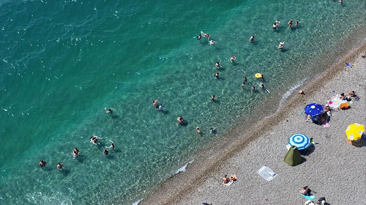 Antalya'da sıcak hava ve yüksek nemden bunalan yerli ve yabancı turistler, sahillerde yoğunluk oluşturdu.