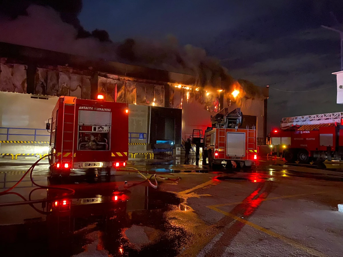Antalya'nın Serik ilçesinde süpermarket zincirine ait depoda çıkan yangın kontrol altına alındı.