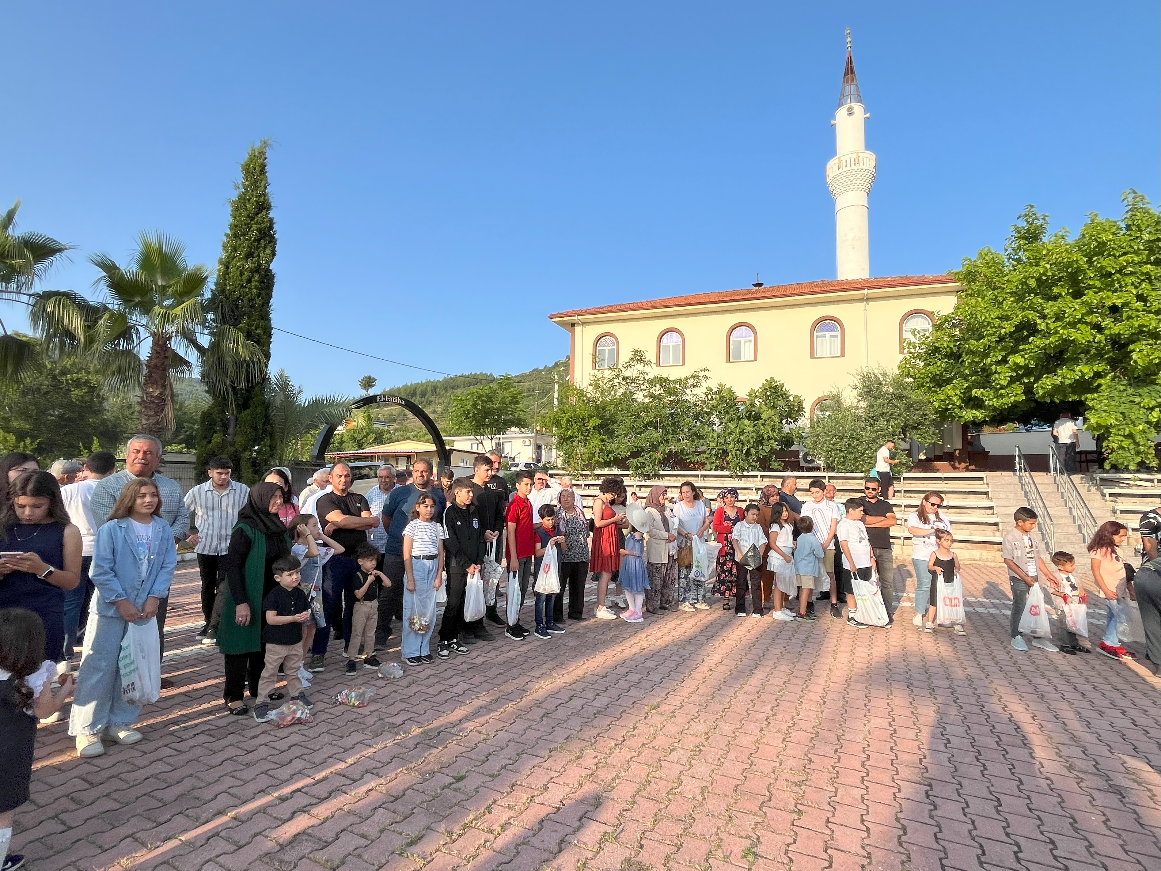 Antalya'da yıllardır aynı geleneği yaşatan mahalle sakinleri cami avlusundaki çocuklara şeker dağıttı