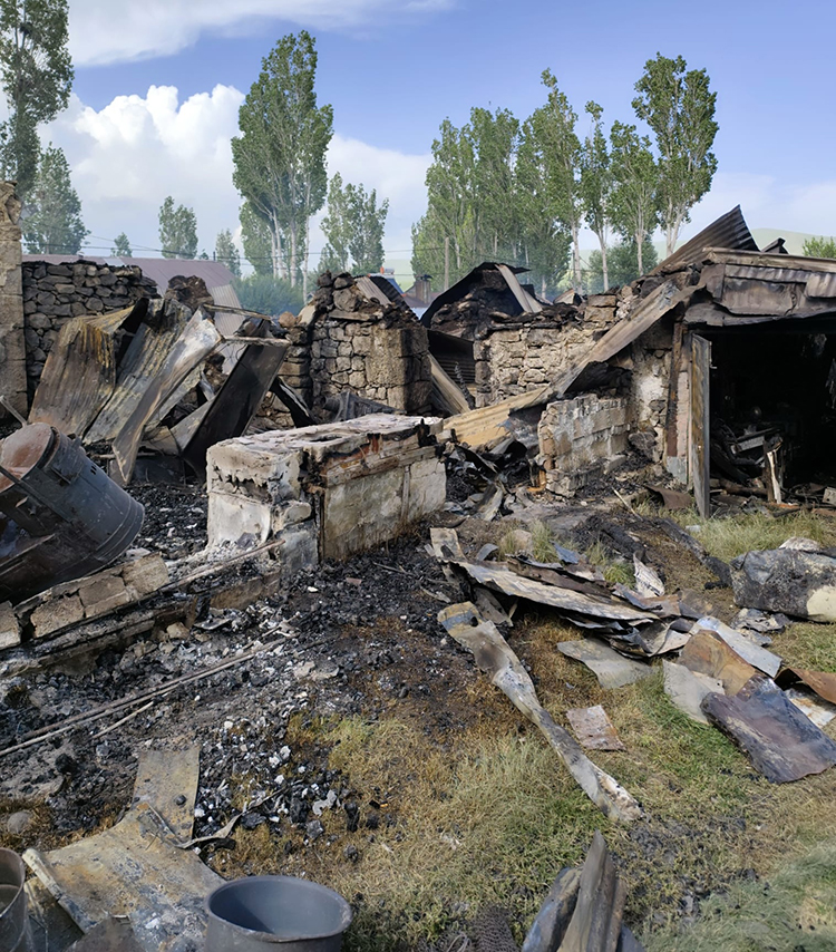 Kars'ın Sarıkamış ilçesinde çıkan yangında 4 ev, 2 samanlık ve 1 ahır ...