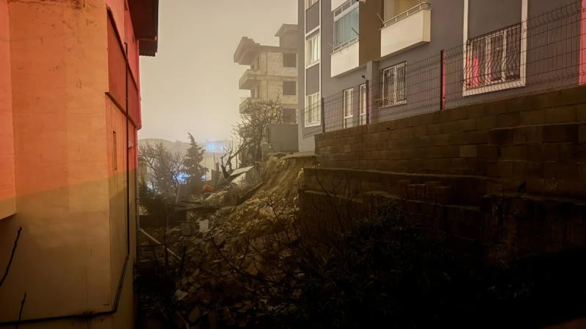 Kahramanmaraş'ın Dulkadiroğlu ilçesinde 4 katlı binanın istinat duvarı çöktü.