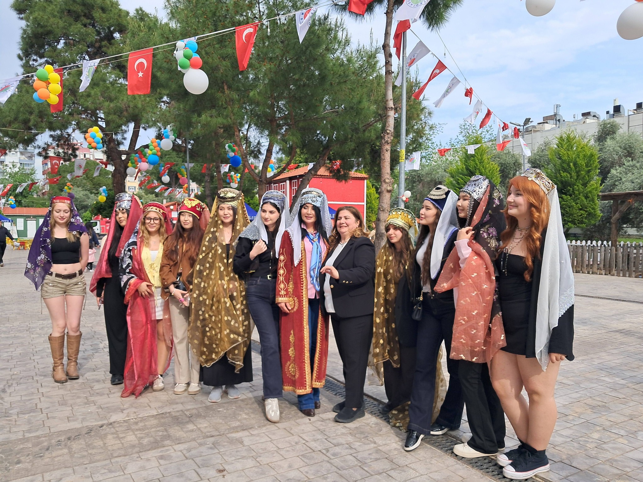 Mariyam Yeziyeva, öğrencileriyle birlikte etkinlik boyunca çocuklara ve yetişkin ziyaretçilere geleneksel Yörük kıyafetlerini özenle giydirerek fotoğraf çekim süreçlerini profesyonel bir şekilde yönetti.