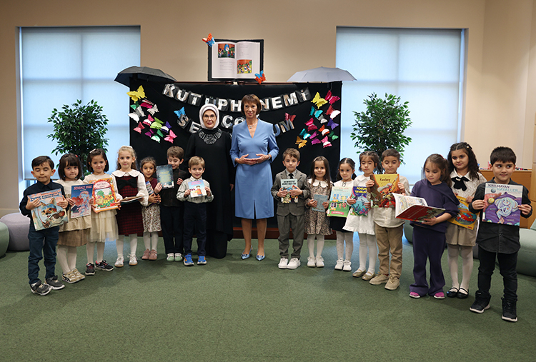 Emine Erdoğan ve Charlotte Merz, Nasreddin Hoca Çocuk Kütüphanesi'ne geçerek burada çeşitli etkinlikler yapan çocuklarla bir araya geldi.