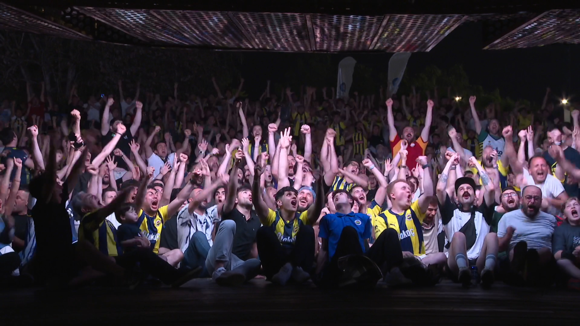 Fethiye Fenerbahçeliler Derneği ile belediye iş birliğinde ilçedeki Beşkaza Meydanı'nda kurulan ekrandan maçı takip eden taraftarlar, bitiş düdüğüyle büyük sevinç yaşadı.