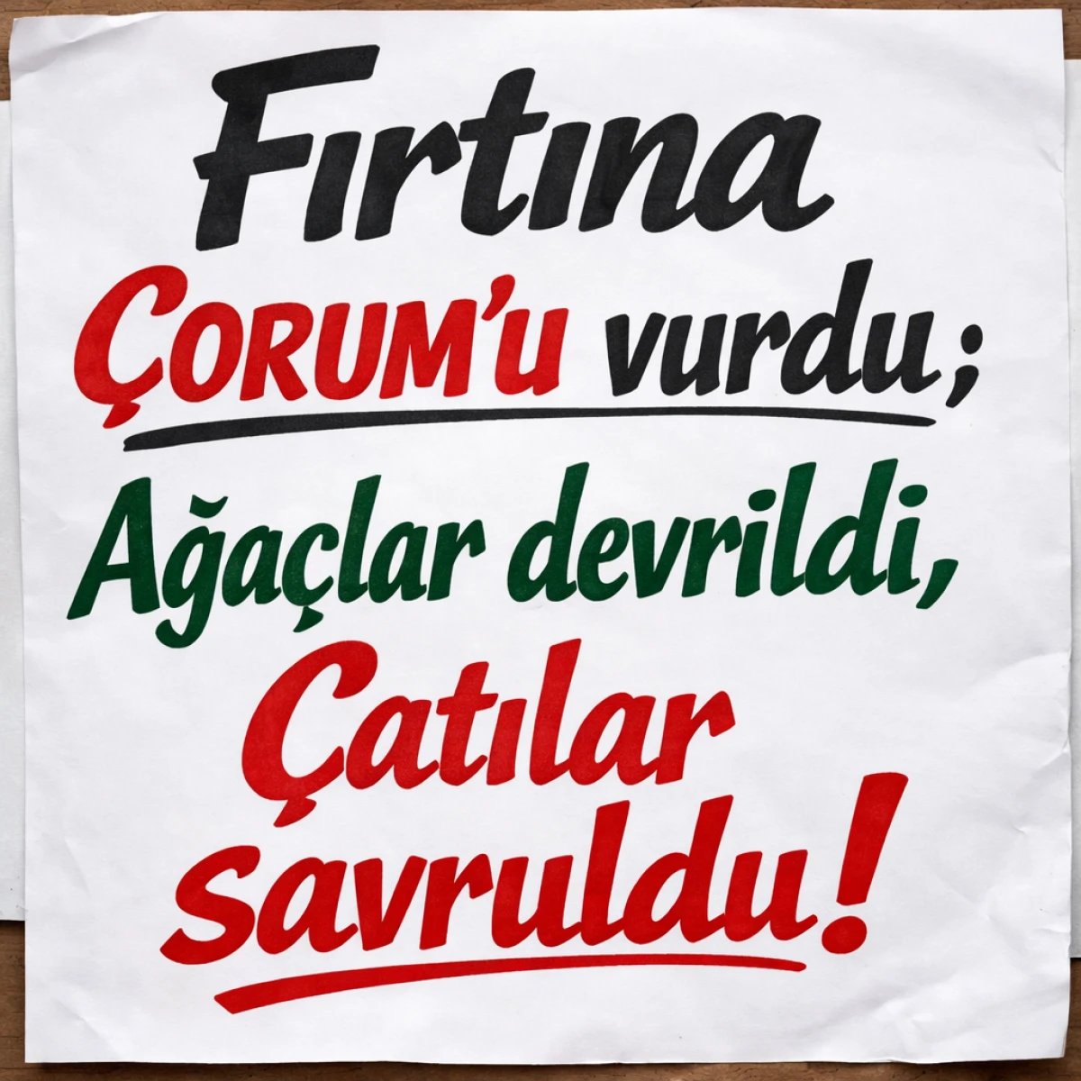Çorum’da etkili olan kuvvetli rüzgâr ve fırtına, elektrik tellerini kopardı, ağaçları devirdi, evlerin çatılarını uçurdu. İlçelerde hayat durdu