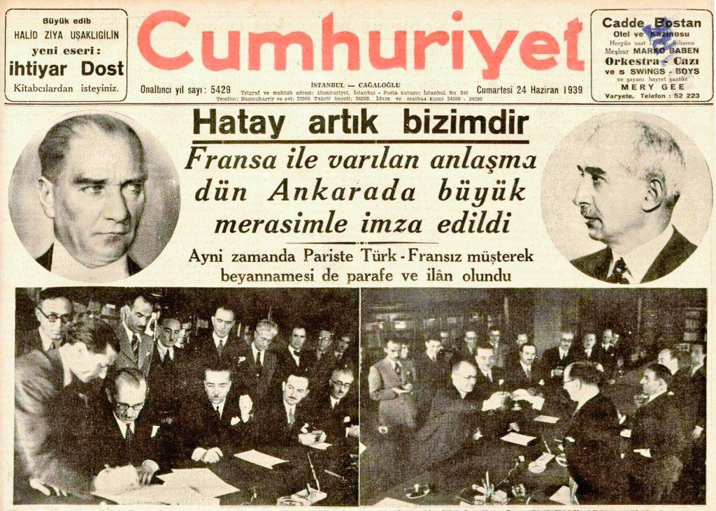 23 Haziran 1939, Gazi Mustafa Kemal Atatürk’ün “Şahsi davam” dediği Hatay’ın Anavatan’a kavuştuğu gündür.