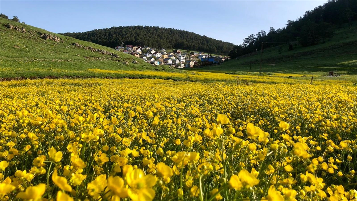 Sivas'ın Koyulhisar ilçesinde doğası ve temiz havasıyla dikkati çeken Eğriçimen Yaylası'nda ilkbaharla birlikte sarı papatyalar açtı.