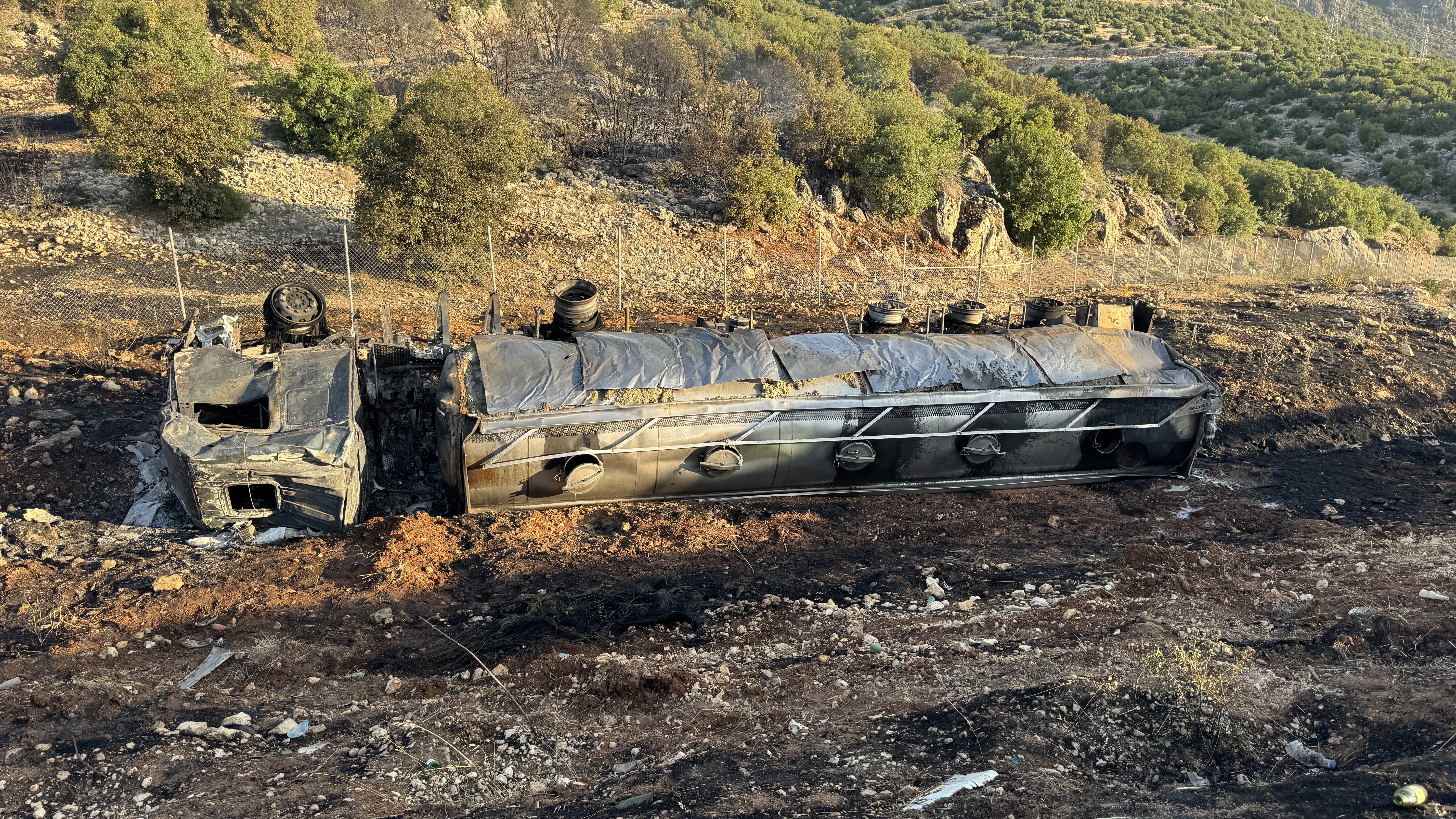 Kahramanmaraş'ta şarampole devrilen bitkisel yağ yüklü tırda çıkan yangın söndürüldü.