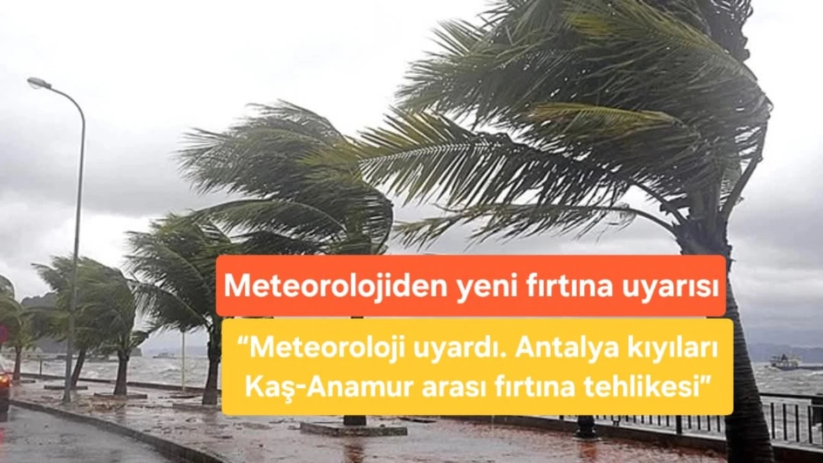 Meteoroloji 4. Bölge Müdürlüğü, Antalya’nın batı ve doğu kıyılarında Pazar akşamı itibarıyla etkili olacak fırtına ve sağanak yağışlar konusunda vatandaşları uyardı. Açıklamaya göre, Kaş ile Anamur arasındaki bölgelerde rüzgarın doğu ve güneydoğu yönlerinden saatte 50-75 kilometre hızla eseceği, kuvvetinin 6 ila 8 arasında olacağı tahmin ediliyor. Fırtınanın Pazartesi öğle saatlerinden itibaren etkisini kaybetmesi bekleniyor.