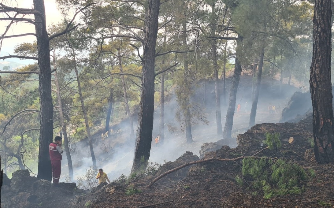 Orman Bölge Müdürlüğü ekipleri ve itfaiye yangına karadan, uçak ve helikopterler de havadan müdahalede bulunuyor.