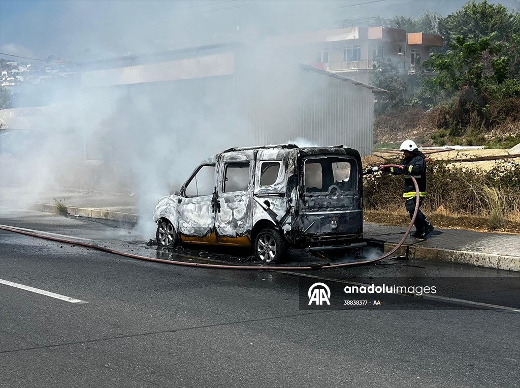 Aracı park eden sürücünün ihbarı üzerine olay yerine itfaiye ve jandarma ekibi sevk edildi.