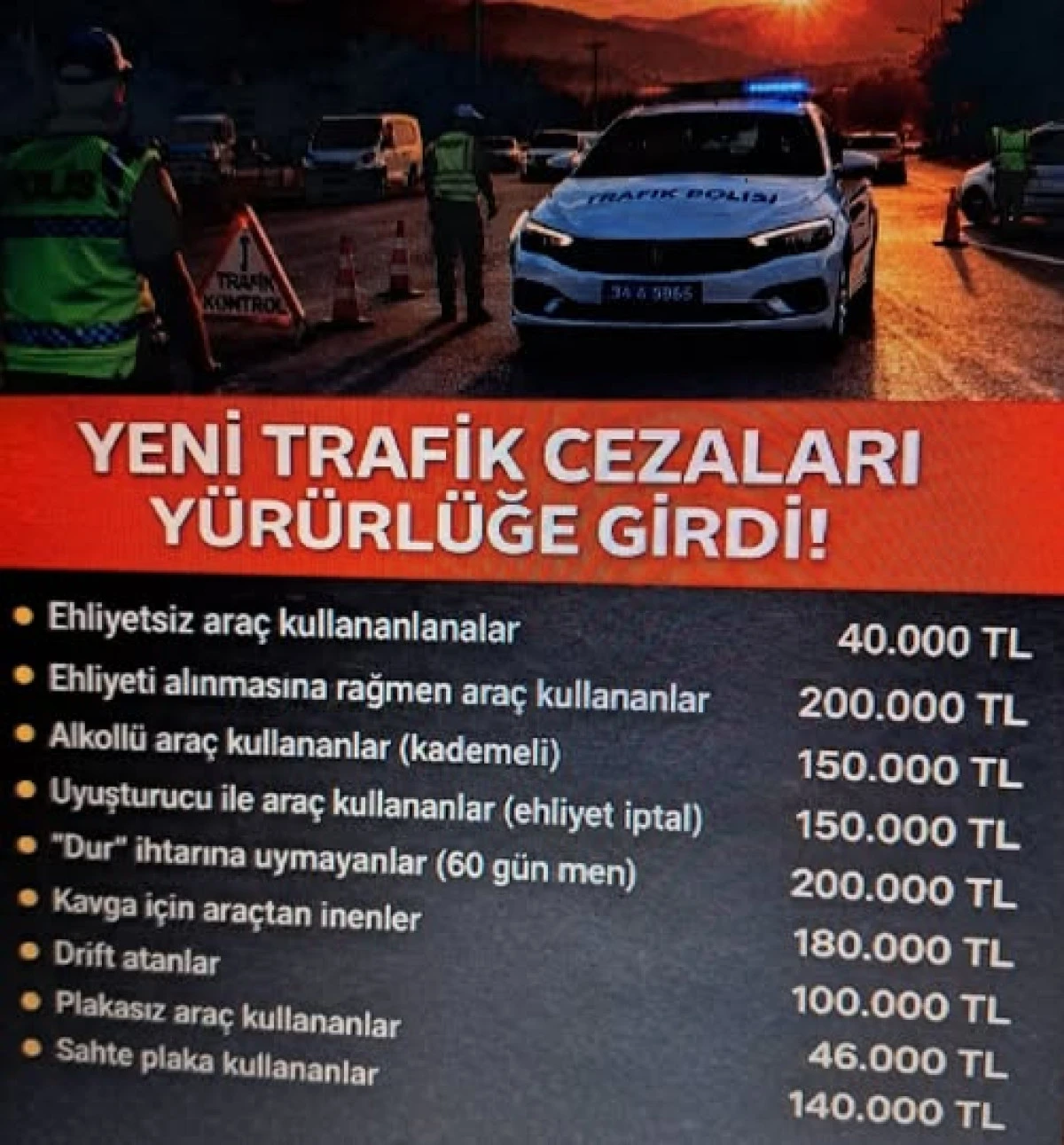 • Ehliyetsiz araç kullananlara 40 bin TL,